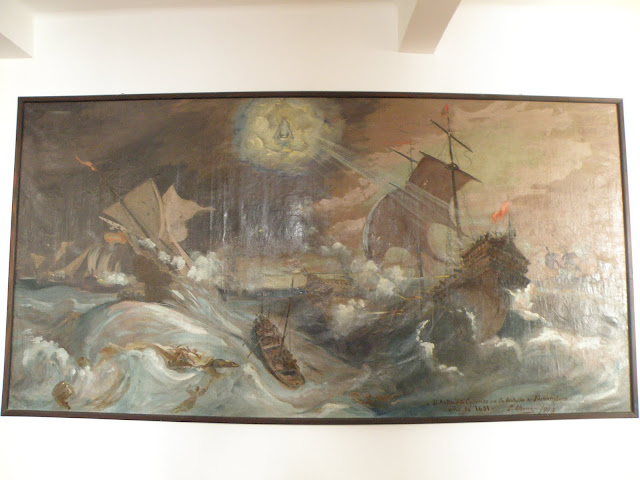 Según la leyenda, durante la batalla de Pernambuco (1631) el almirante D. Antonio Oquendo ((San Sebastián, octubre de 1577 – La Coruña, 7 de junio de 1640) recibió en su nave un potente cañonazo que no le hizo daño alguno gracias a la intervención de la Virgen de Aránzazu. Este milagro lo dejó plasmado Pablo Uranga en un lienzo que se conserva hoy en el claustro del monasterio de Aránzazu, fechado en 1918.