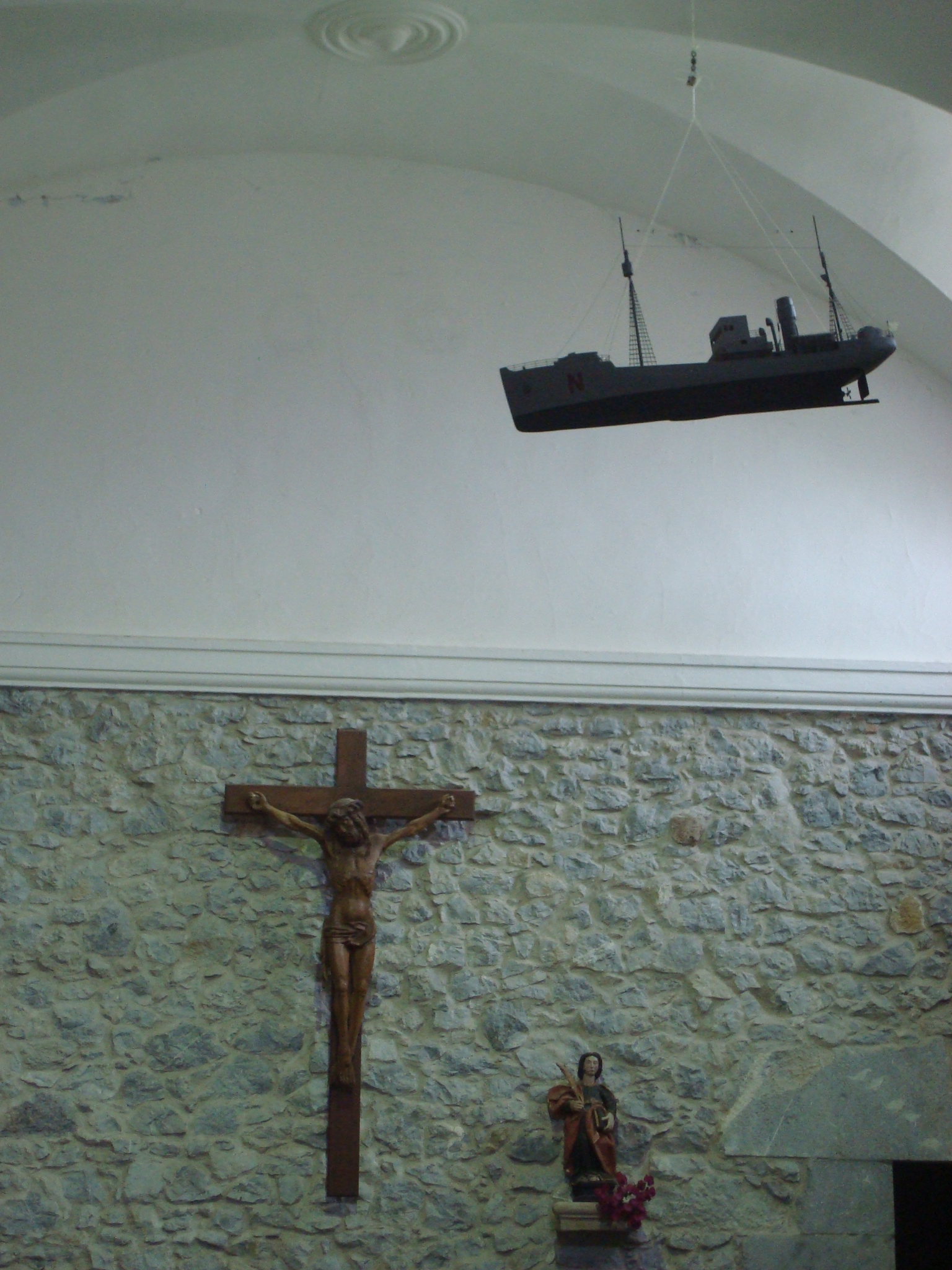 Nabarra bouaren modeloa. Mundakako Santa Katalina ermitan zintzilikatutako zinoparia.