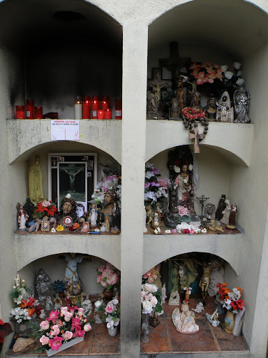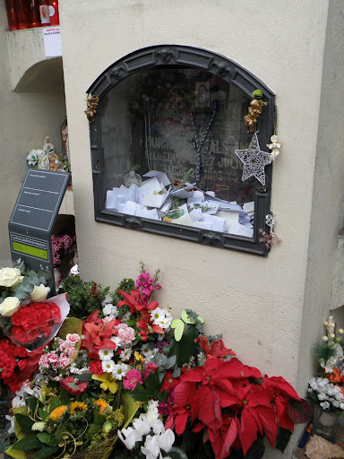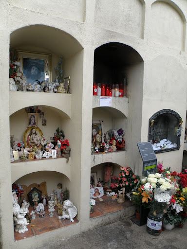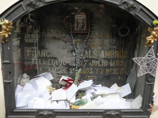 El chico trabajaba en los famosos almacenes barceloneses de El Siglo. Según la leyenda popular, antes de morir de tuberculosis el joven predijo el incendio que ocurrió en esta nave en 1932. No se sabe con certeza cuando el sepulcro de este chico se convirtió en un lugar de peregrinación o quien le otorgó el calificativo de “santo” popular, pero el caso es que la tumba de “El Santet” es objeto de devoción. Sus seguidores creen que el joven puede interceder ante Dios para obrar milagros, y por ello son muchos los que le rezan y le dejan mensajes, ofrendas, exvotos y flores. Incluso los nichos vecinos han tenido que vaciarse para albergar todos los objetos que los fieles depositan en la tumba del Santet (información tomada de aquí).