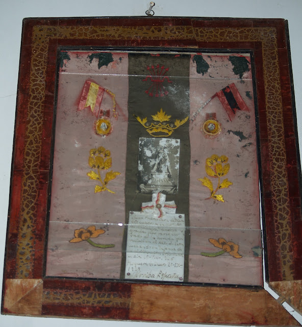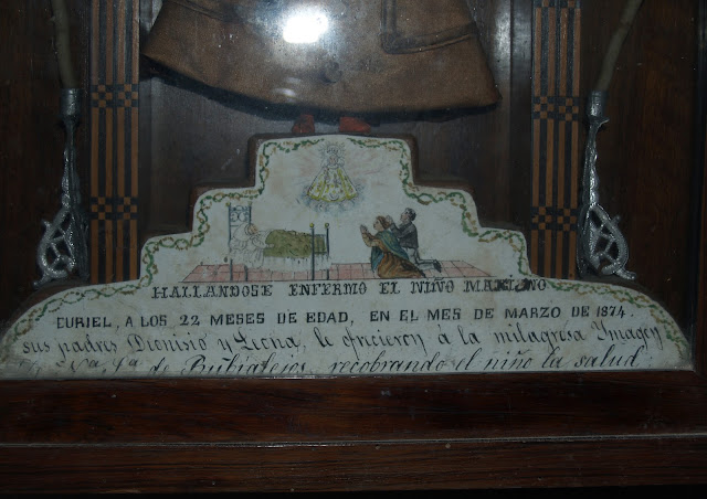 -Lema o inscripción: Hallandose enfermo el niño Mariano Euriel a los 22 meses de edad en el mes de marzo de 1874 sus padres Dionisio la ofrecieron a la milagrosa ymagen de Nª Sª de Rubialejos recobrando el niño la salud