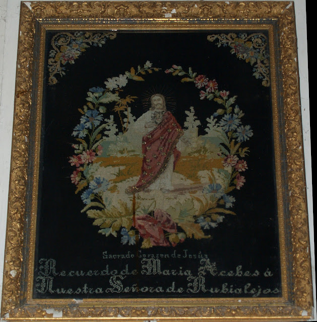 -Lema o inscripción: Juan Andrés Para dedica este cuadro a la (sic) de Rubialejos dándola gracias por verse curado de la herida que recibió en el Alto de León luchando en defensa de la civilización cristiana el día (sic)-VIII-1936 Pesquera de Duero 20-IX-1937 ¡¡Arriba España!!