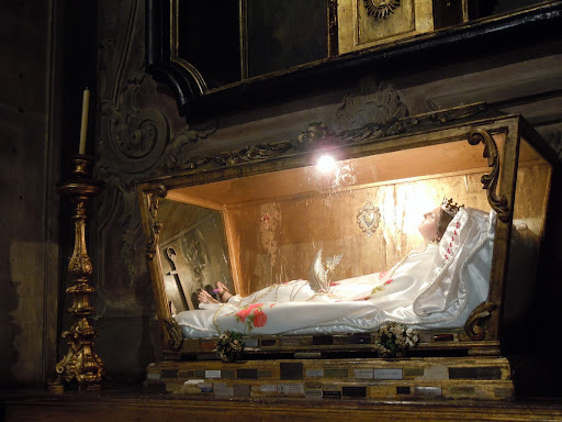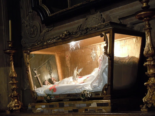 En el interior de la iglesia varias imágenes están rodeadas de plaquitas votivas. Como ejemplo las imágenes de San Expedito y Santa Filomena que mostramos a continuación.