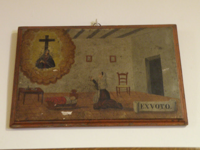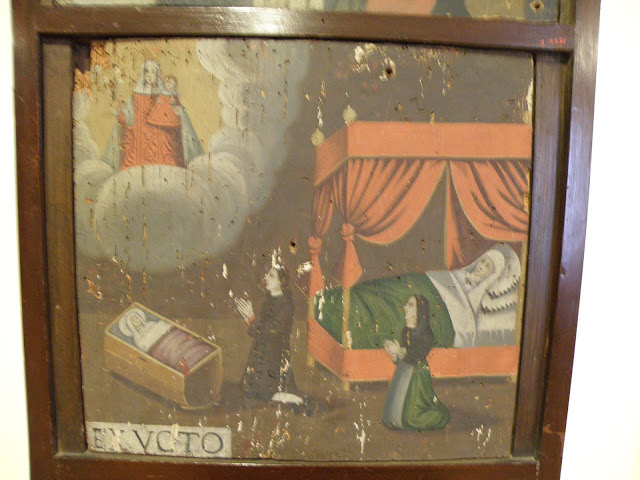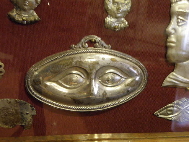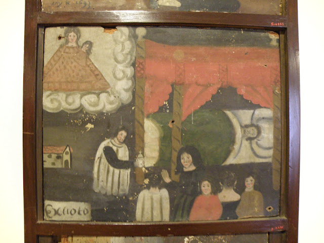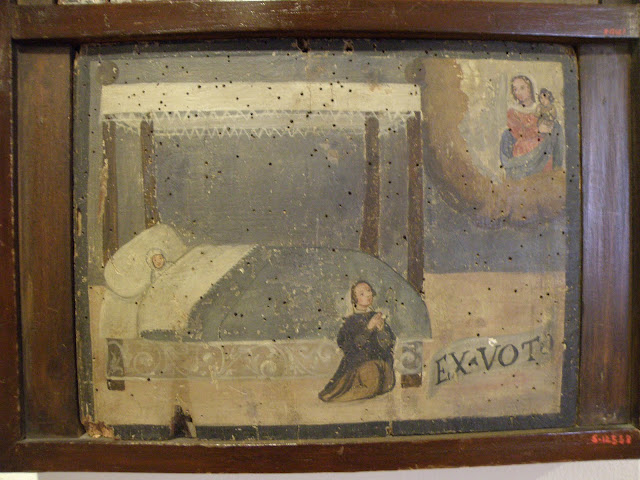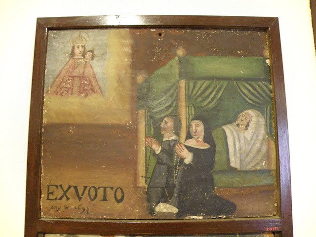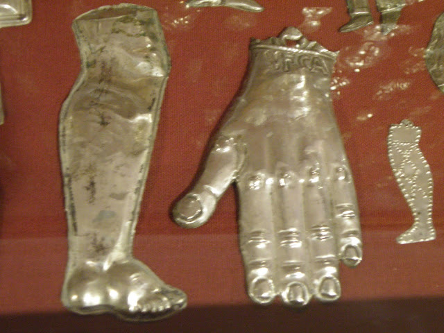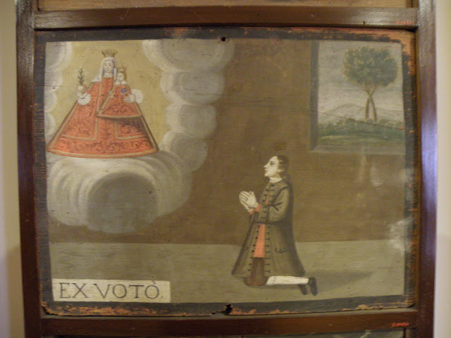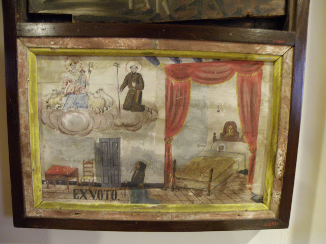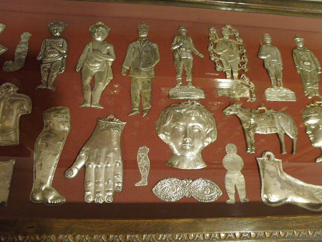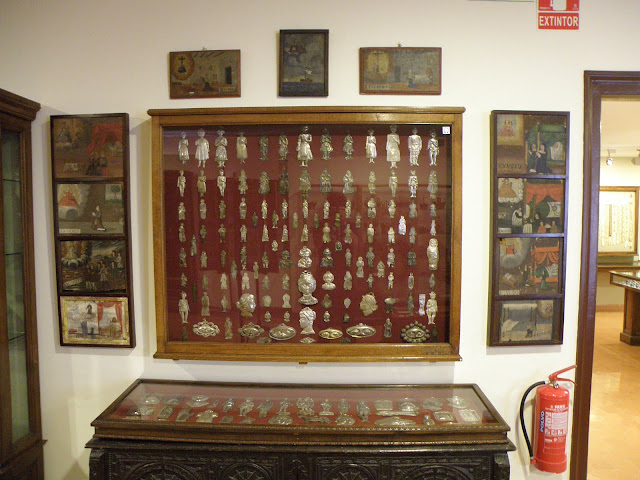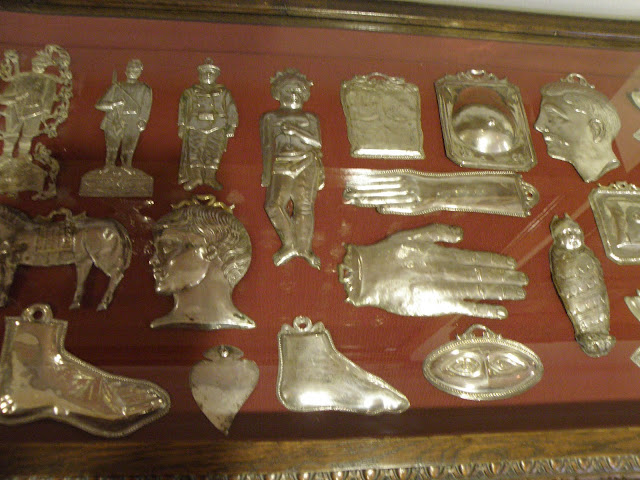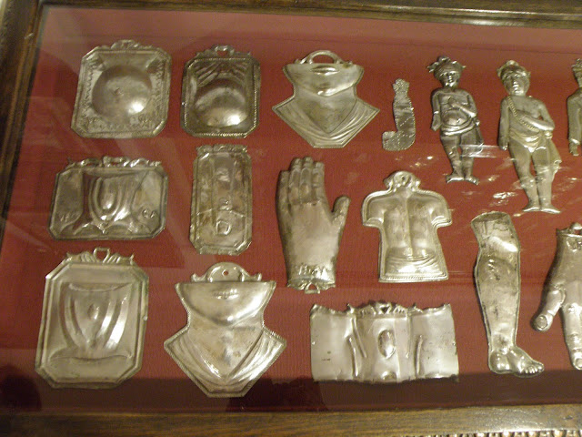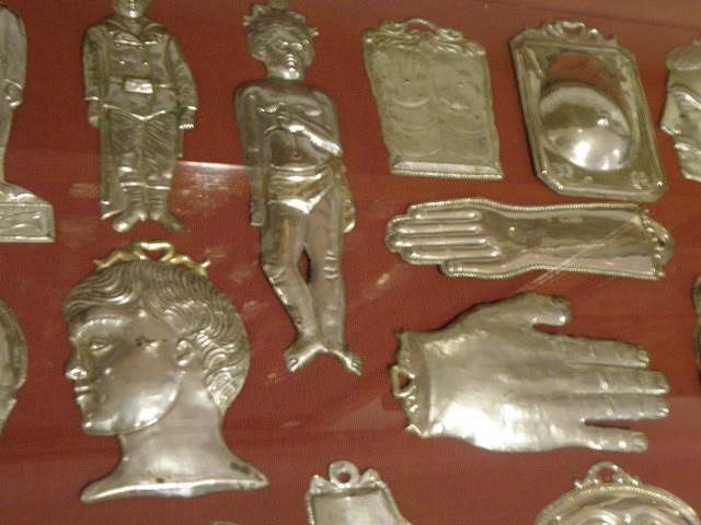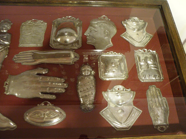 En la sala de fe del Gabinete del Coleccionista se encuentran los exvotos que nos interesan. La colección de exvotos está compuesta por más de un centenar de ejemplares realizados en plata estampada o repujada, y también por algunas pequeñas pinturas sobre tabla. Ambas tipologías compartían su función de ofrendas de gratitud y esperanza que decoraban las paredes de los santuarios.