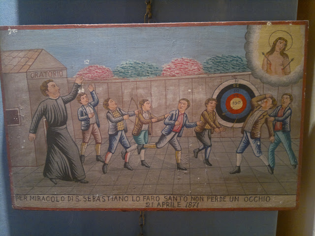 -Lema o inscripción: Per miracolo di S. Sebastiano lo faro santo non perde un occhio. 21 Aprile 1871.