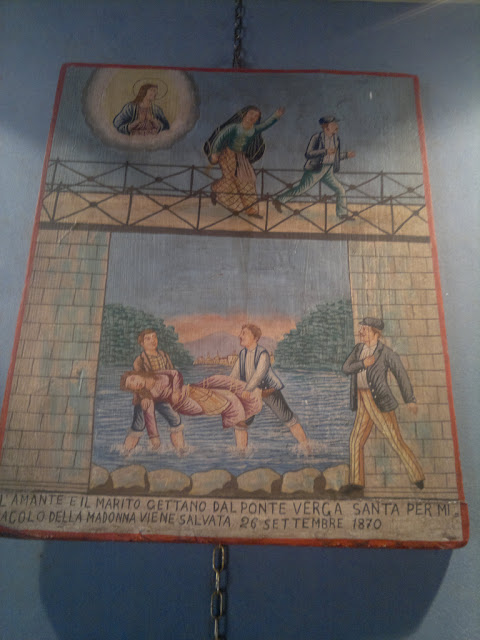 -Lema o inscripción: L’amante e il marito gettano dal ponte verga santa per miracolo della madonna viene salvata. 26 Settembre 1870.