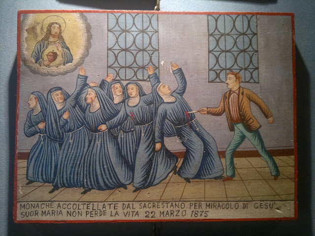 -Lema o inscripción: Monache accoltellate dal sacrestano per miracolo di Gesu’ suor Maria non perde la vita. 22 Marzo 1875.