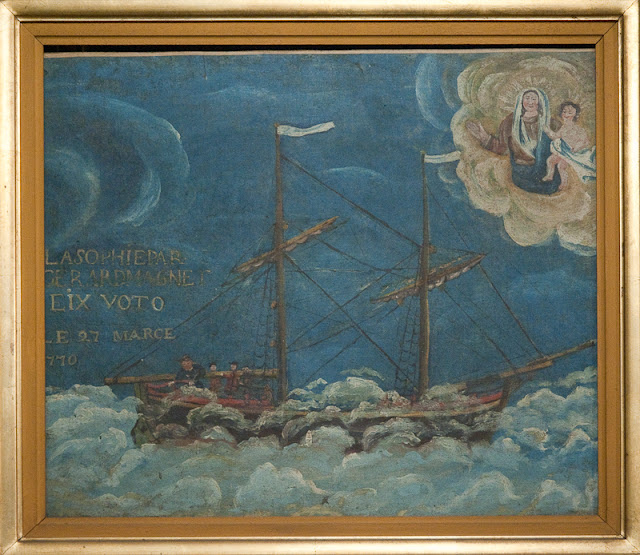 En sus paredes se pueden ver multitud de pequeñas placas de agradecimiento encargadas por los marinos que alguna vez se han salvado de la tempestad del mar.