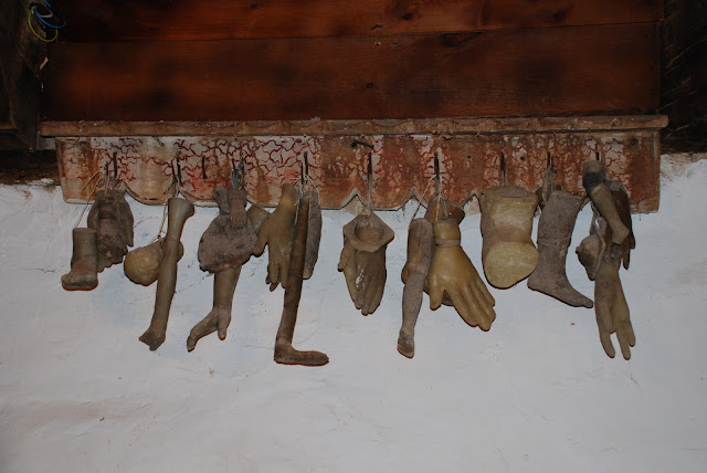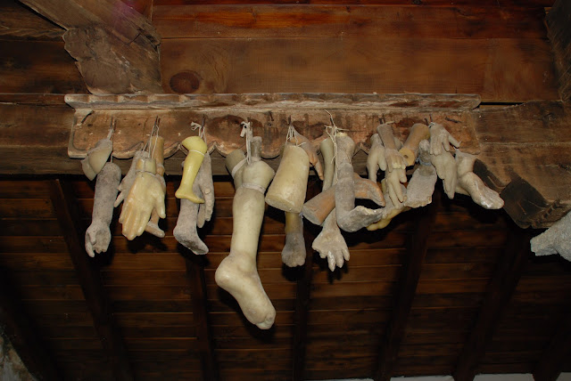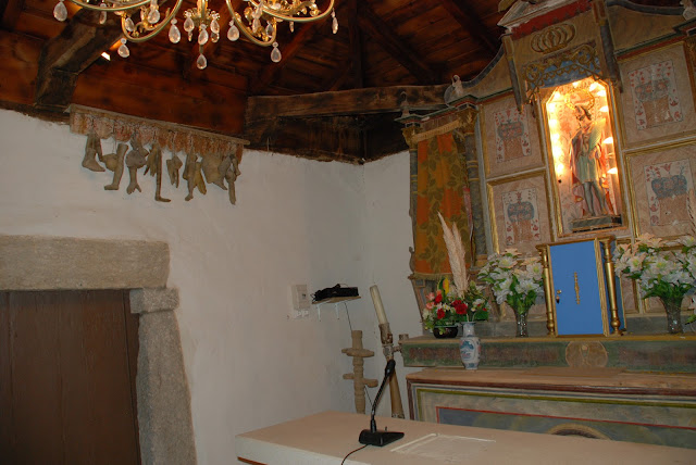Como nos comenta Emiliano, los exvotos están a ambos lados del altar y son todos de cera, manos y piernas principalmente. A san Tirso lo piden remedio para los males de huesos, reumatismos etc.