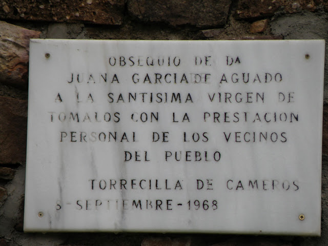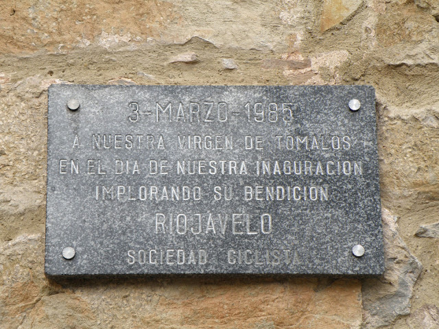 -Lema o inscripción: “En 2 de Octubre de 1876, hallándose en la plaza de Torrecilla, en la posición en que se ve, el niño Eduardo Velasco, de 6 años y medio de edad, se salvó milagrosamente invocando a Nuestra Señora de Tómalos”