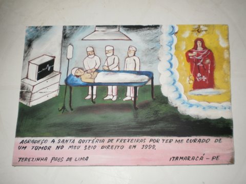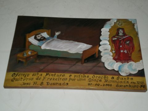 El Santuário de Santa Quitéria das Frexeiras es uno de los centro de peregrinación mas importantes del Nordeste del país. El acervo de exvotos que atesora el templo es sin duda uno de los más numerosos de Brasil. El santuario es visitado por miles de fieles que acuden a rendir devoción a Santa Quitéria. Una de las peculiaridades de este caso es la enorme variedad de modalidades que encontramos entre los exvotos, la mayoria son tallas en madera representando la parte afectada del cuerpo, pero tambien encontramos figuras y miles de objetos de todo tipo, exvotos pictóricos de interés, recortes, fotografías, muletas, etc.